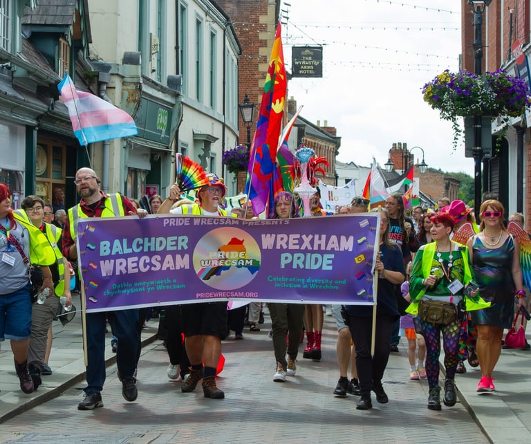 At Pride Wrecsam, we are committed to celebrating diversity and creating a safe space for people of all identities to come together and embrace love and inclusion.